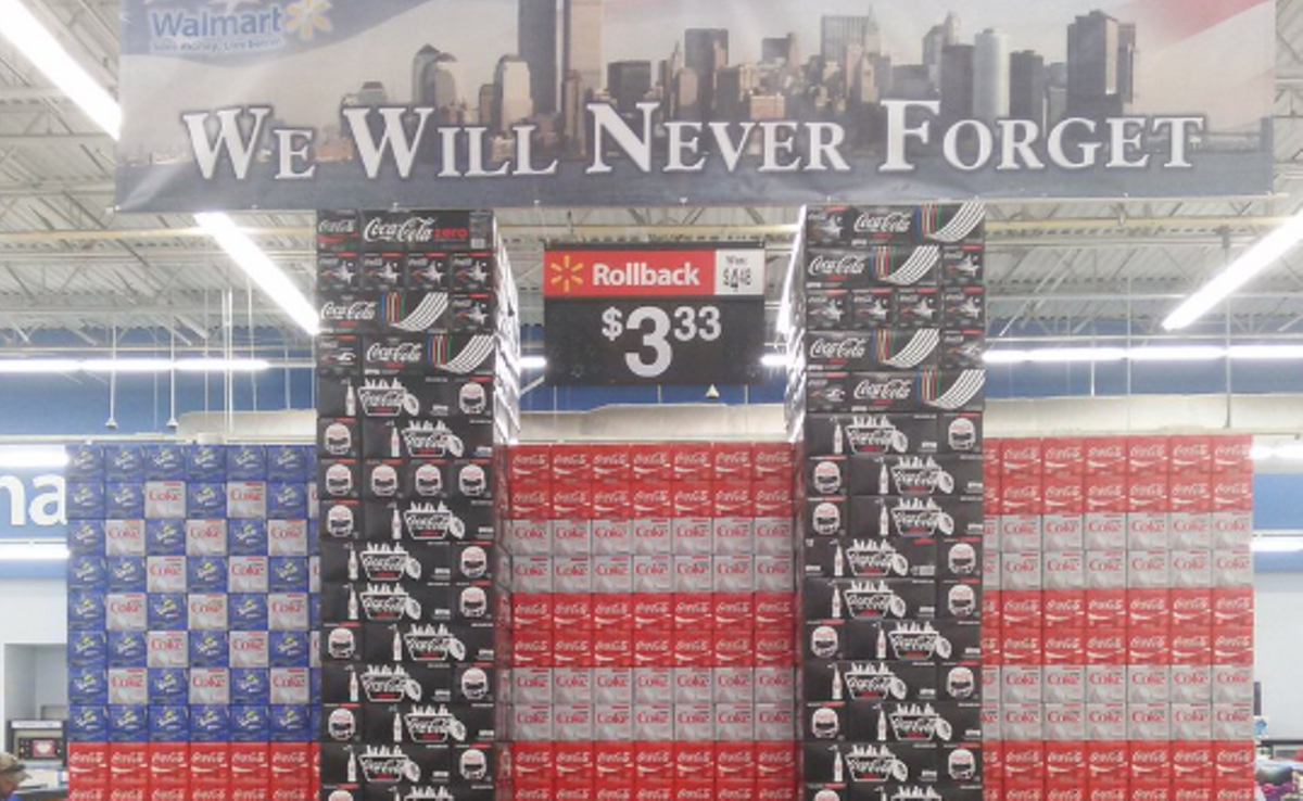 Crowson also let us know that Coke typically approaches Walmart with display ideas, and they either approve or deny it. In this case, Walmart approved the 9/11 display.